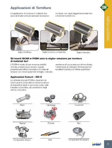 Applicazioni di Tornitura continue, con taglio leggermente interrotto INSERTI PCBN