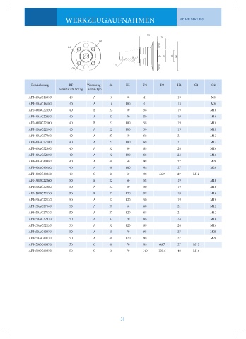 Bezeichnung BT Werkzeug- d2 H1 D1 D3 H2 G1 G2