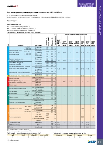 Таблица 1 - основная подача, ƒz0, мм/зуб ƒz0 для размера/ геометрии пластин