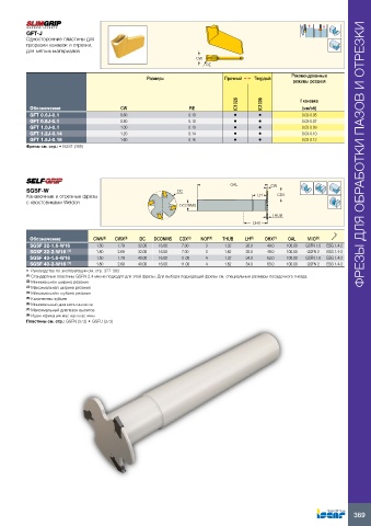 Фрезы см. стр.: • SGST (368) ФРЕЗЫ ДЛЯ ОБРАБОТКИ ПАЗОВ И ОТРЕЗКИ