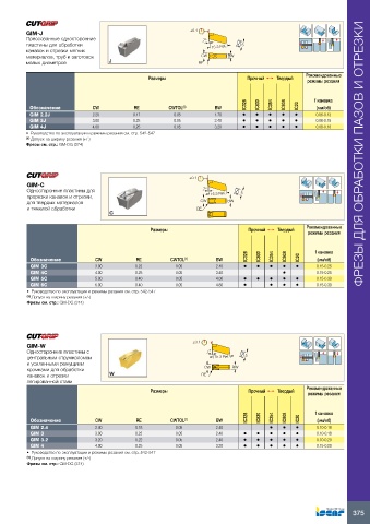 Фрезы см. стр.: GM-DG (374)                                                                                  ФРЕЗЫ ДЛЯ ОБРАБОТКИ ПАЗОВ И ОТРЕЗКИ
