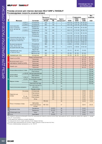 Режимы резания для отрезки фрезами SELF-GRIP и TANGSLIT