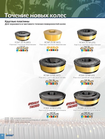 RCMT 20­14 (MO)                    RCMT 25­SR (MO)                         RCMX 25­NR (00)                                   TP20    Твердая основа с обогащением верхнего слоя кобальтом, и многослойным покрытием MTCVD TiCN и альфа-