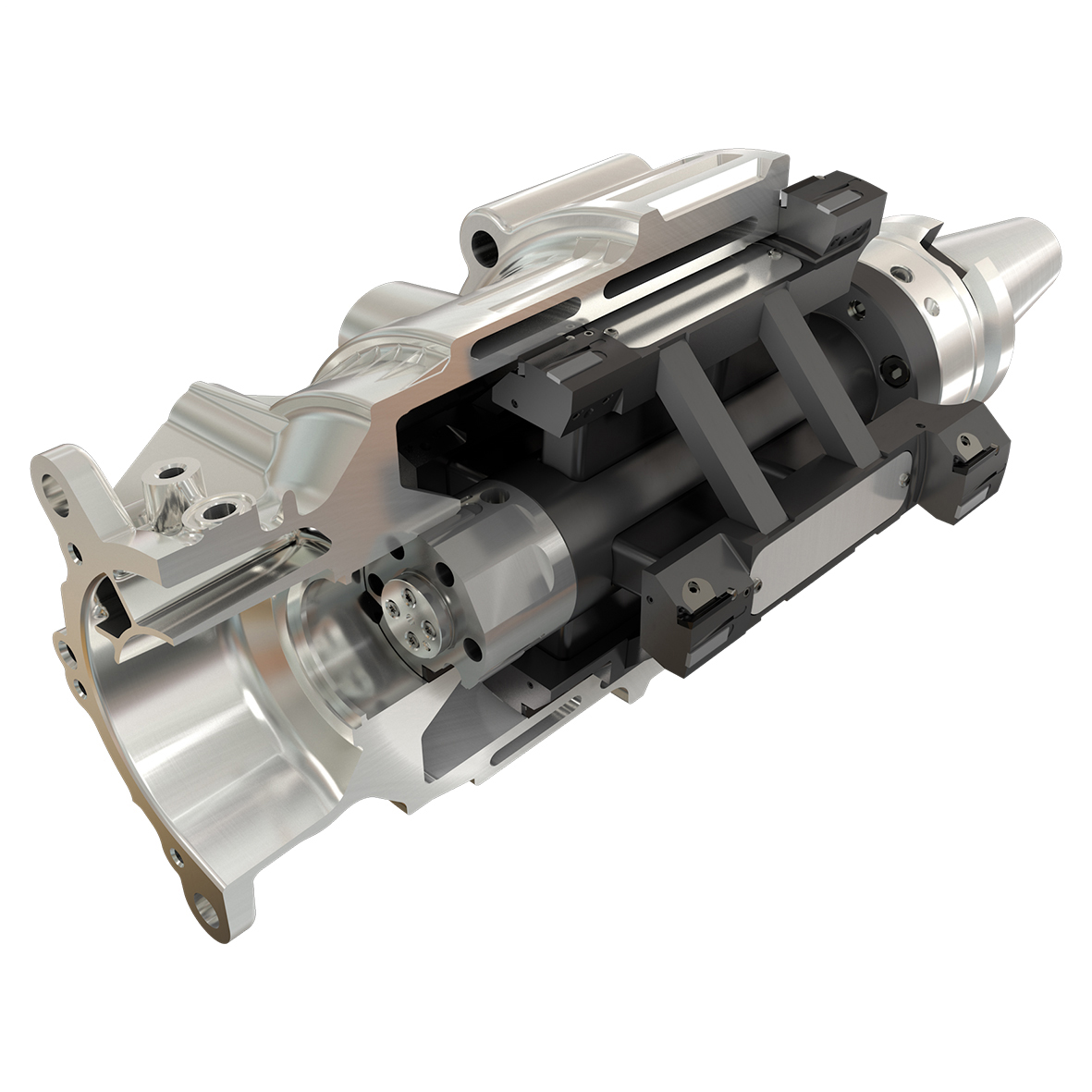 La operación más compleja del mecanizado de la carcasa de aluminio es el mandrinado y escariado del diámetro principal. Dada la tendencia a utilizar máquinas de baja potencia, la utilización de herramientas de gran diámetro y voladizo requiere creatividad para minimizar el peso y la carga sobre el husillo, manteniendo la rigidez. Para el cuerpo de la herramienta se utilizan materiales exóticos como el titanio y la fibra de carbono, y el diseño es soldado.