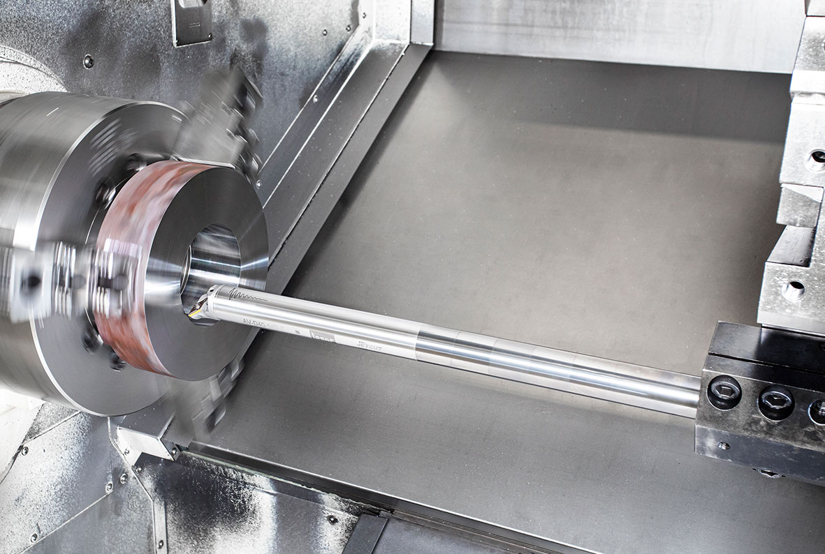 Las barras de mandrinado WHISPERLINE (Fig. 4) tienen un mecanismo interno antivibración sumergido en una absorbente masa auxiliar. Las barras facilitan el corte estable en voladizos altos. Iscar ha ampliado las soluciones de sujeción de barra mediante conexión con adaptación cónica poligonal según ISO 26623, con soportes con adaptación VDI y bloques de herramientas tipo manguito.