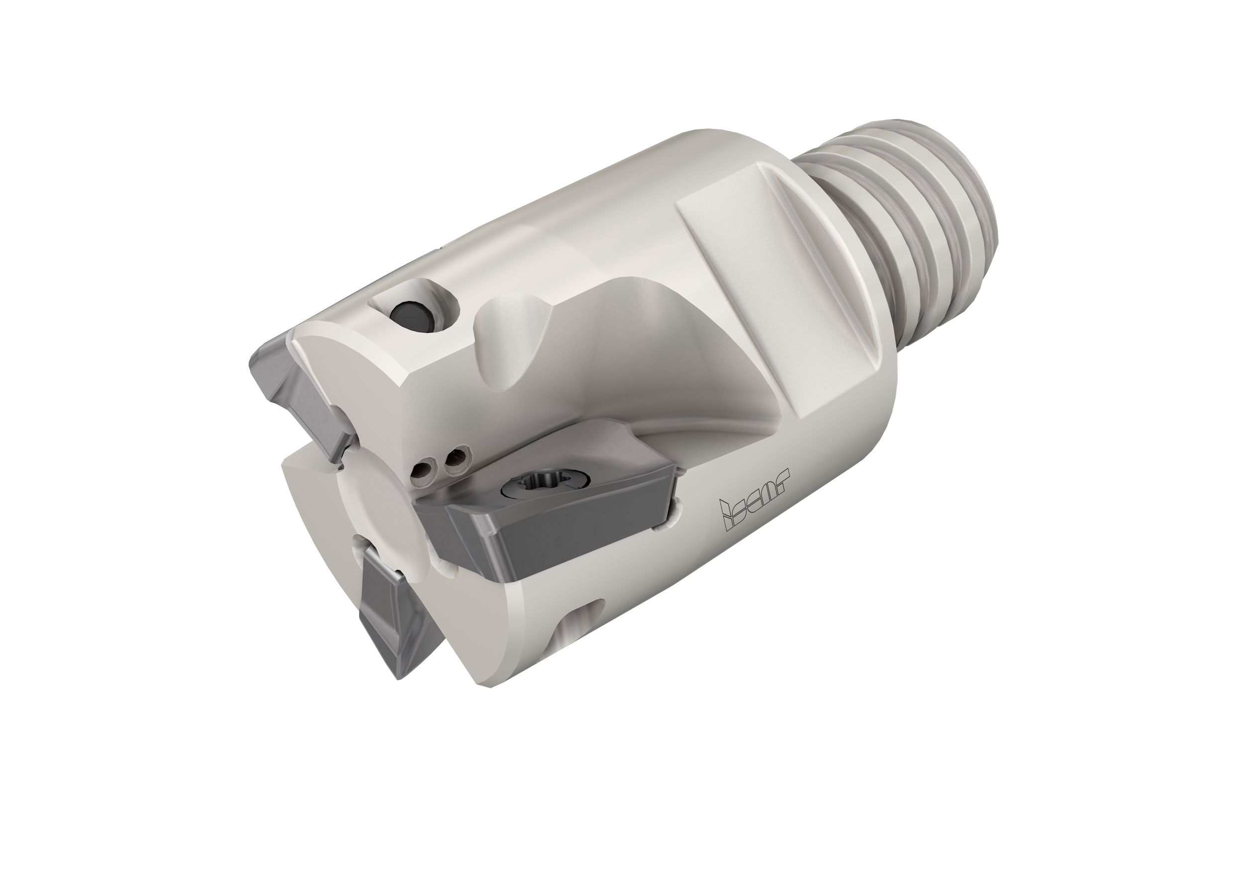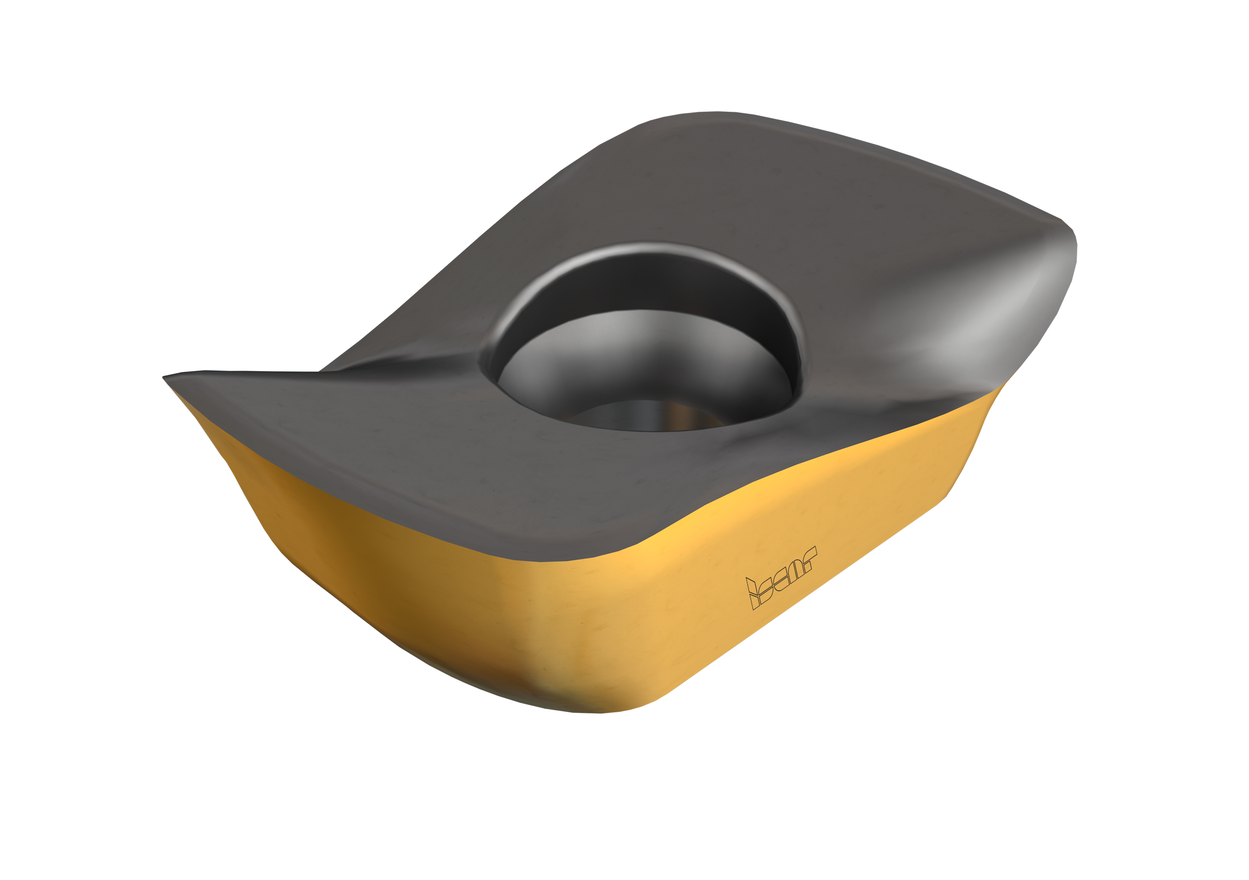 To maximize the efficiency of cemented carbides, a new round of insert development was initiated. The successful adaptation of the helical cutting edge to triangular inserts addressed this limitation. The triangular insert concept not only provides three cutting edges but also offers additional benefits. When compared to other shapes with equal cutting-edge length, the triangular shape provides a wider central area. This allows for an increase in the central bore size, enabling the use of a clamping screw with a larger thread. As a result, the insert securing is strengthened, contributing to the overall durability of the milling tool assembly. Additionally, the triangular shape enhances the ramping-down cutting capability.